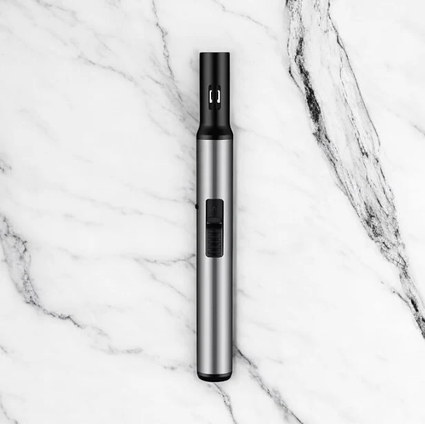 This lighter is a sleek and sophisticated tool designed for the discerning cigar enthusiast. Its cylindrical, long, and slim profile (19 cm by 2.5 cm) is crafted from high-quality steel, giving it a substantial feel in the hand that exudes durability and luxury.